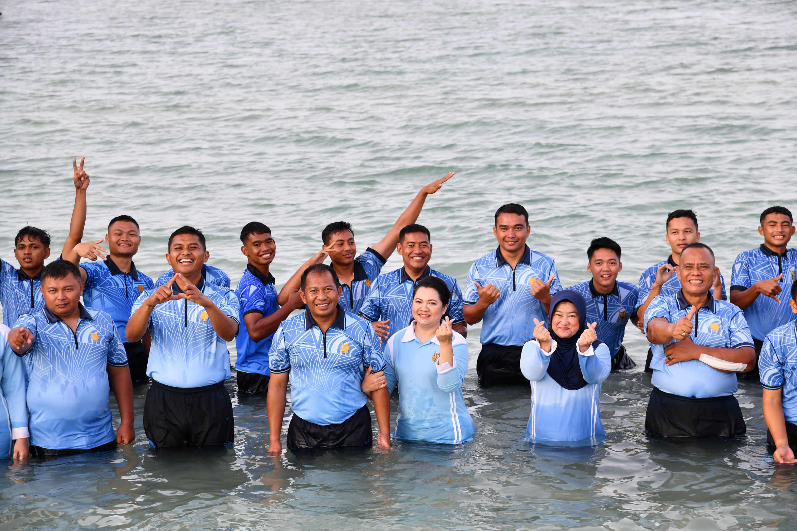 Puncak kegiatan ditandai dengan mandi bersama di pantai. Air laut yang menyentuh tubuh menjadi perlambang pembersihan diri, sementara canda dan kebersamaan memperkuat soliditas. Tidak ada sekat pangkat maupun jabatan semua larut dalam suasana kekeluargaan.