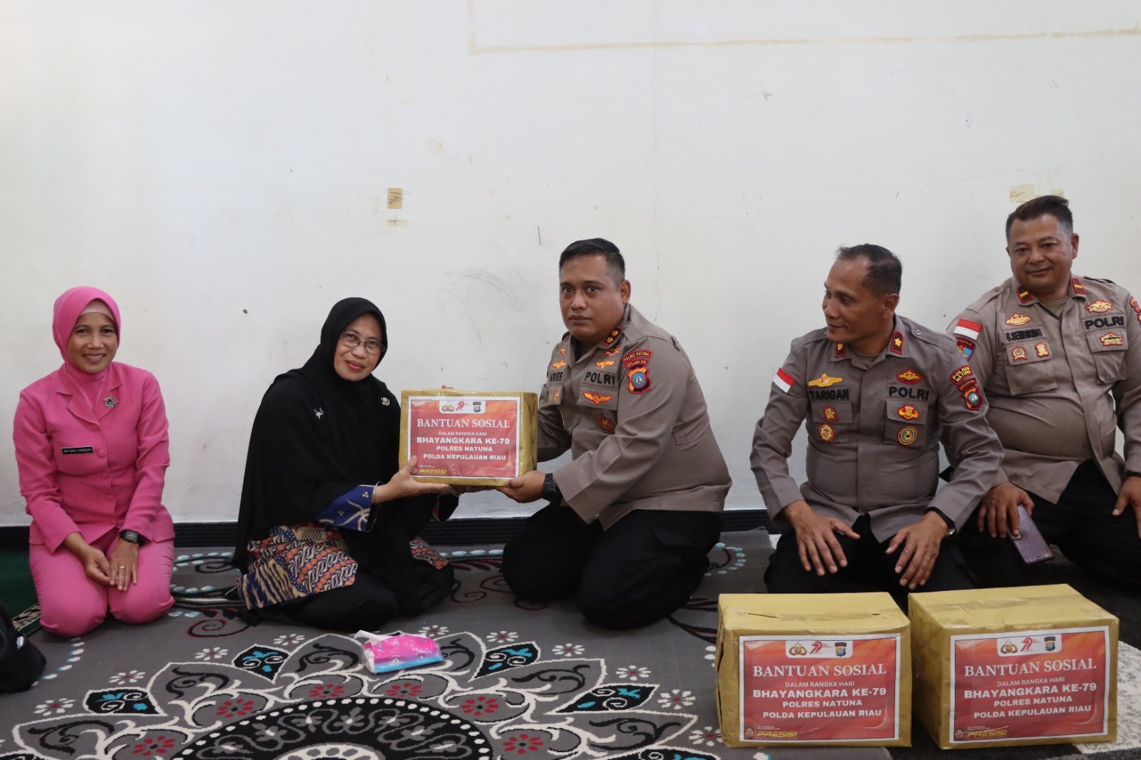 (Kapolres Natuna saat menyerahkan bingkisan)