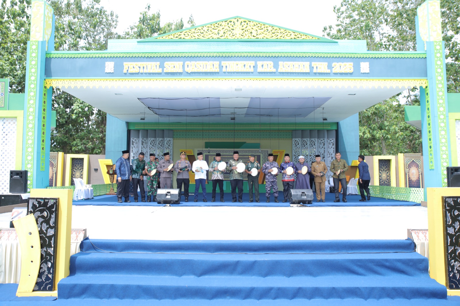(Keterangan foto : Bupati dan Wakil Bupati Asahan bersama Forkopimda memukul rebana pertanda dimulainya FSQ.)