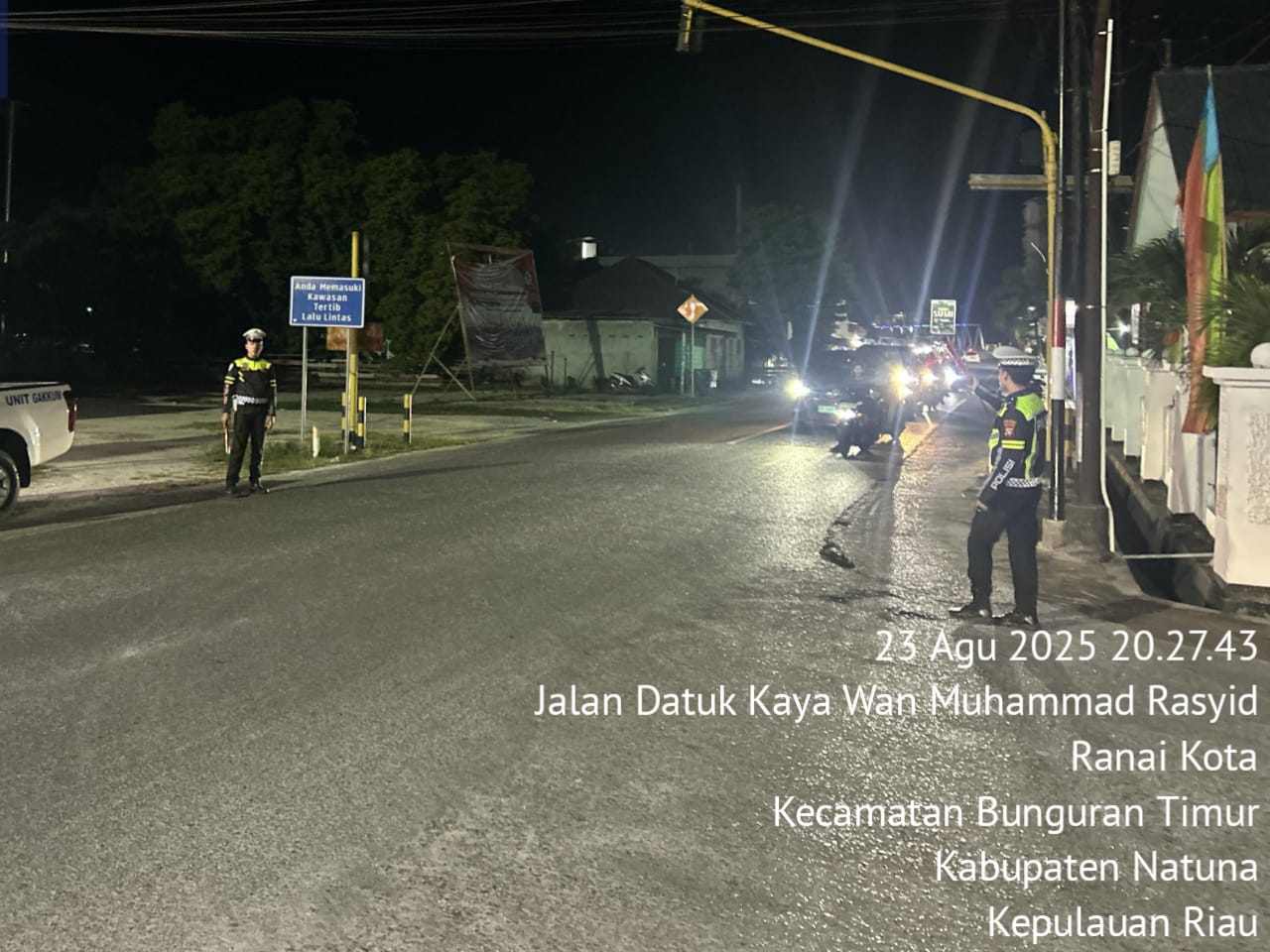 Natuna, News Faktual Net – Satuan Lalu Lintas (Satlantas) Polres Natuna menggelar Patroli Kegiatan Rutin yang Ditingkatkan (KRYD) pada Sabtu malam (23/8), mulai pukul 20.30 WIB hingga selesai. Patroli ini bertujuan menciptakan keamanan, keselamatan, ketertiban, dan kelancaran lalu lintas (Kamseltibcarlantas), sekaligus menjaga ketertiban masyarakat di wilayah hukum Polres Natuna.