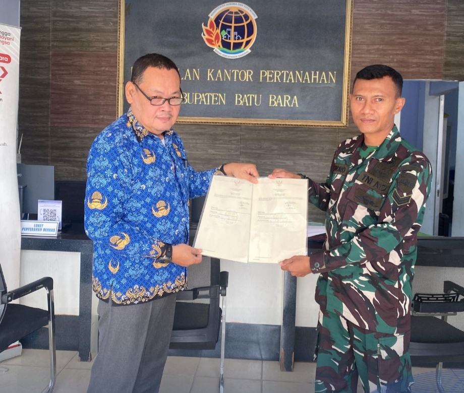 Sertipikat BMN itu diserahkan oleh petugas loket Perwakilan Kantah Batu Bara kepada perwakilan Kementerian Pertahanan RI dari Batalyon 126 Kala Cakti TNI-AD, Sertu Kisworo. Penyerahan berlangsung dengan tertib dan disaksikan oleh unsur terkait, menandai selesainya proses administrasi pertanahan yang telah melalui tahapan verifikasi sesuai ketentuan yang berlaku.