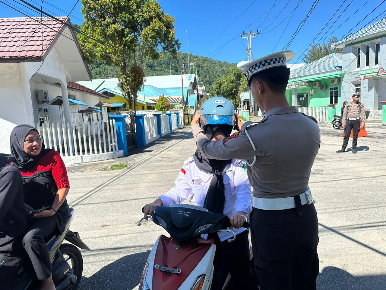 Namun ketegangan itu segera luluh ketika para petugas justru menyodorkan helm baru, lengkap dengan senyum ramah dan pesan keselamatan. “Ini helmnya, Bu. Dipakai selalu ya,” ujar seorang polisi dengan nada bersahabat. Helm yang semula menjadi simbol kewajiban, pagi itu berubah menjadi hadiah yang menghangatkan hati.