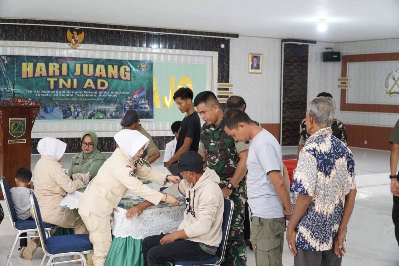 Kodim 1406/Wajo menggelar kegiatan pemeriksaan dan pengobatan kesehatan gratis bagi personel, Persit, dan masyarakat umum dalam rangka memperingati Hari Juang Kartika TNI AD ke-80 Tahun 2025
